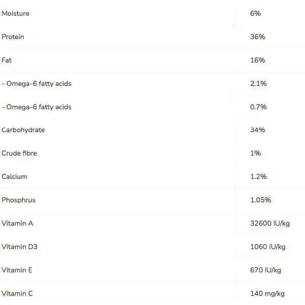 İçindekiler : Somon Eti, Pirinç, Mısır Glüten Unu, Kümes Hayvanları Türevleri Unu, Kurutulmuş Yumurta Ürünü, Karışık Tokoferollerle Korunmuş Sığır Yağı, Buğday Unu, Soya Proteini Konsantresi, Balık Unu, Aroma, Tuz, Mineraller, Vitaminler, Taurin.