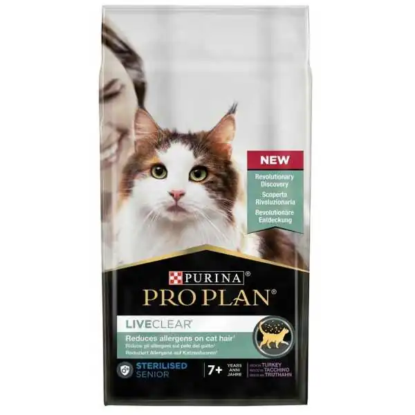 PRO PLAN® LIVECLEAR® Sterilised Senior, Zengin Hindi Etli, Prebiyotik, Antioksidan, omega-3 ve omega-6 Yağ asitlerinin özel bir kombinasyonu sayesinde uzun ve sağlıklı bir yaşam için gerekli hayati organları ve fonksiyonları (Bağışıklık Sistemi, böbrekler, sindirim sistemi) destekler. Ayrıca dengeli mineral içeriği sayesinde Kısırlaştırılmış kedilerin üriner sistem sağlığını korurken içeriğindeki yüksek Protein, artırılmış Lif ve düşük karbonhidrat seviyesi ideal vücut ağırlığının korunmasına yardımcı olur.