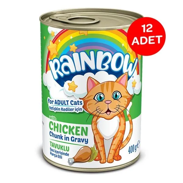 Rainbow Tavuklu Parça Etli Yetişkin Kedi Konservesi 400gr X 12 Adet
