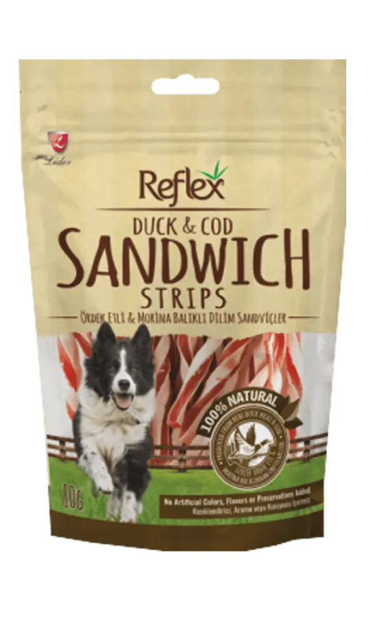 Reflex Duck Sandviç ördek ve balıklı sandviç ödül maması. Özellikle eğitim dönemlerinde köpeğinizin doğru davranışları öğrenmesini kolaylaştırır. Doğal ve taze içeriğe sahip olan ödül maması köpeğinizin damak tadına uyum sağlayacaktır. Tüm ırk yetişkin köpekler için uygundur. Ödül maması köpeğinizin kolaylıkla çiğneyebileceği yumuşak küpler şeklindedir. Reflex ödül maması minimum % 30 oranında ham protein içermektedir. Küp şeklinde olan ödül köpeğinizin kolaylıkla çiğneyebileceği lokmalar halindedir.