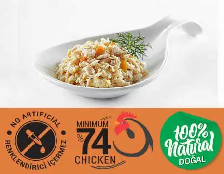 Tavuk (%74.28), Balkabağı (%2.86), Pirinç(%1.43) ve Tavuk Suyu.