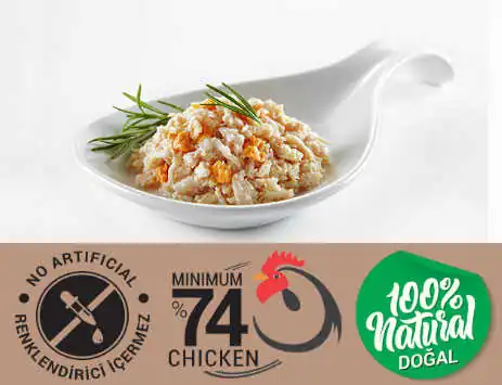 Tavuk (%74.28), Peynir (%2.86), Pirinç(%1.43) ve Tavuk Suyu.