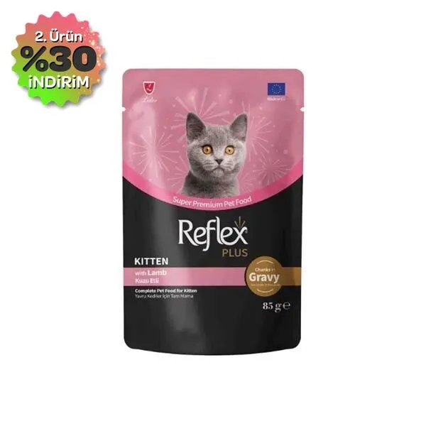 Reflex Plus Sos İçinde Et Parçacıklı Kuzu Etli Yavru Kedi Konservesi 85gr