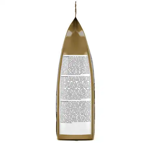 İçerik:mısır, pirinç, kurutulmuş kümes hayvanları proteinleri, hayvansal yağlar, hidrolize hayvansal proteinler, kurutulmuş domuz eti proteinleri, mısır unu, bitkisel protein izolat*, hindiba posası, soya yağı, balık yağı, mayalar ve ilgili parçalar, mineraller, frukto-oligo-sakkaritler, hodan yağı (%0,1), kadife çiçeği özü (lutein kaynağı), hidrolize edilmiş kabuklu hayvanlar (glukozamin kaynağı), hidrolize edilmiş kıkırdak (kondroitin kaynağı).