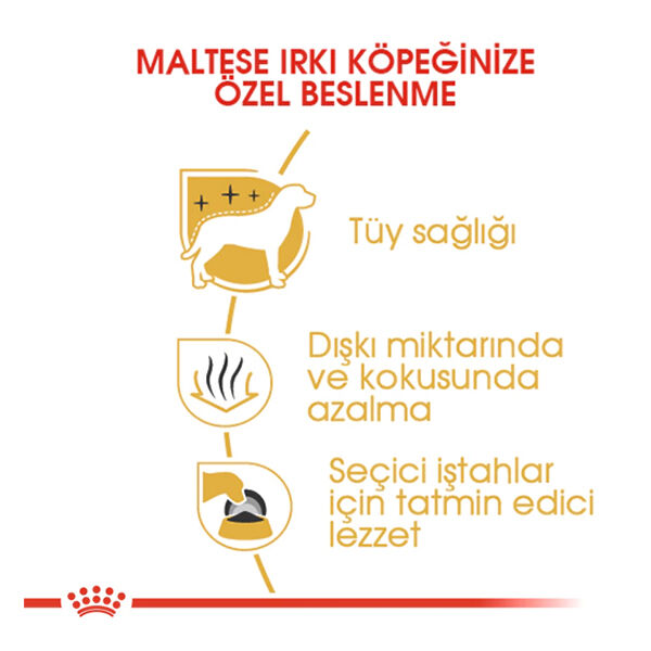 Royal Canin Maltese Adult, Maltese ırkı yetişkin köpeklerin özel ihtiyaçları göz önünde bulundurularak formüle edilmiştir. Tüy sağlığı, diş sağlığı ve ideal kilo kontrolünü desteklerken, seçici köpeklerin iştahını tatmin eden özel aromasıyla öne çıkar.