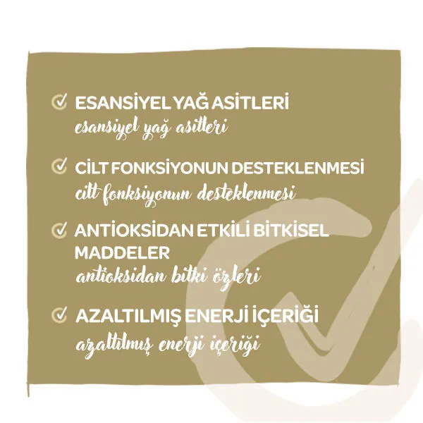 1 yaş üzerindeki yetişkin kediler için özel olarak formüle edilen Sanabelle Hair & Skin, hassas cilt yapısına veya mat tüy görünümüne sahip kediler için ideal bir beslenme çözümüdür. Somon yağı, keten tohumu ve yüksek kaliteli hayvansal protein kaynakları ile parlak tüy görünümünü desteklerken, dengeli içeriği sayesinde uzun süreli günlük beslenmeye uygundur. Gluten içeren tahıllar kullanılmadan hazırlanan tarif, hassas sindirime sahip kediler için de son derece uygundur.