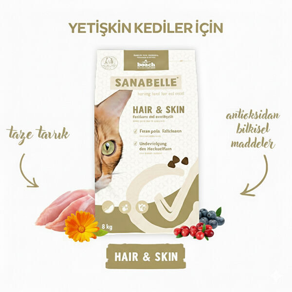 Sanabelle Hair & Skin Sağlıklı Tüy Gelişimi İçin Yetişkin Kedi Maması 8 Kg