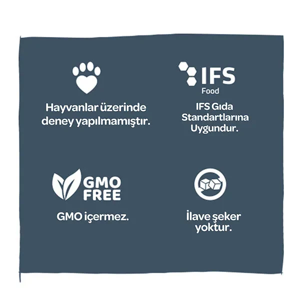 - Kurutulmuş kızılcık (%0,1), kurutulmuş yaban mersini (%0,1), kurutulmuş yeşil dudaklı midye