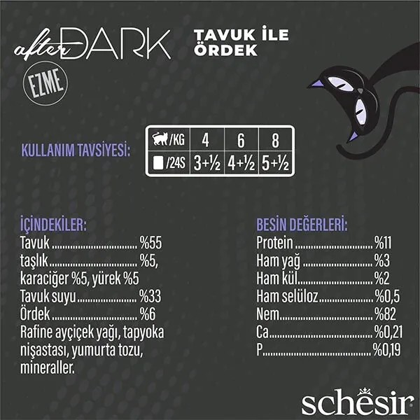 Schesir After Dark Tavuk ve Ördek Etli Tahılsız Yaş Kedi Maması 80 Gr