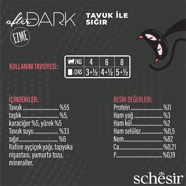 Schesir After Dark Tavuk ve Sığır Etli Pate Tahılsız Yaş Kedi Maması 80 Gr