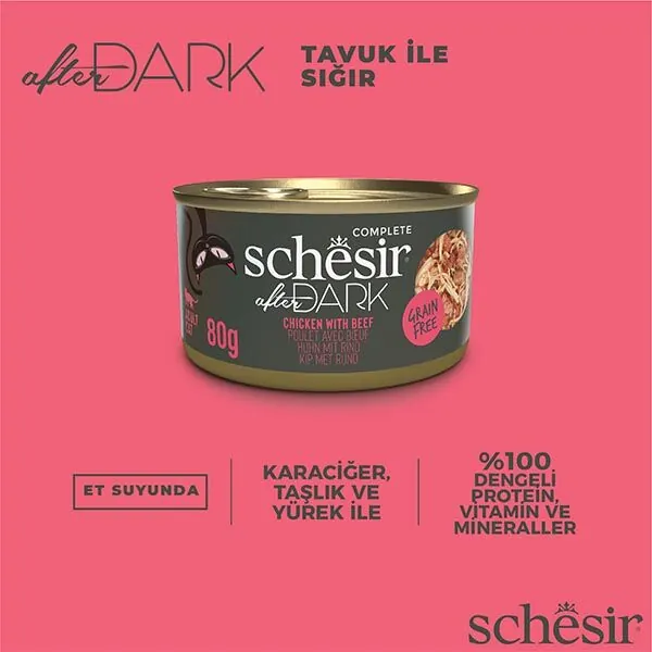 Schesir After Dark Tavuk ve Sığır Etli Yaş Kedi Maması 80 Gr