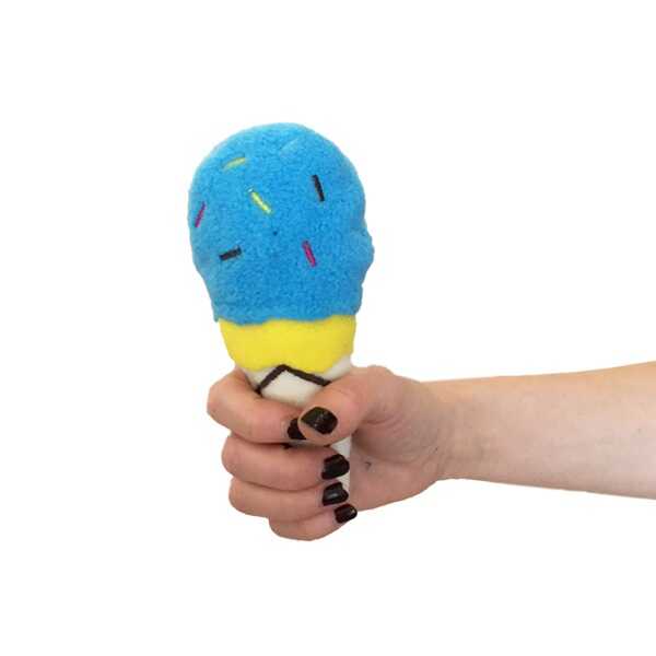 Sevimli dondurma şeklinde, polar kumaştan üretilmiş oyuncaktır.