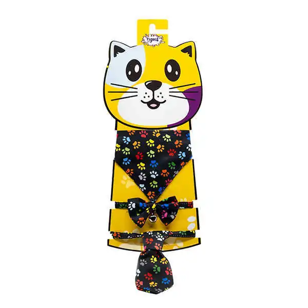 Tigres Team Pati Desenli Papyon-Kravat-Fular Kedi Tasma Takımı