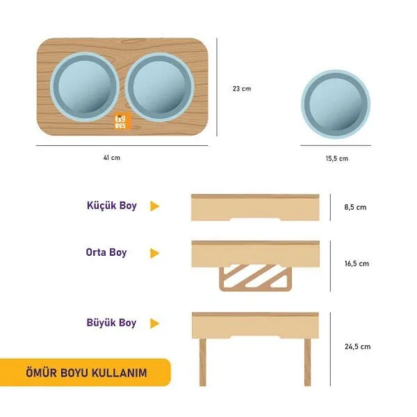 Tigres Stuff Ayarlanabilir 2'li Mama ve Su Kabı