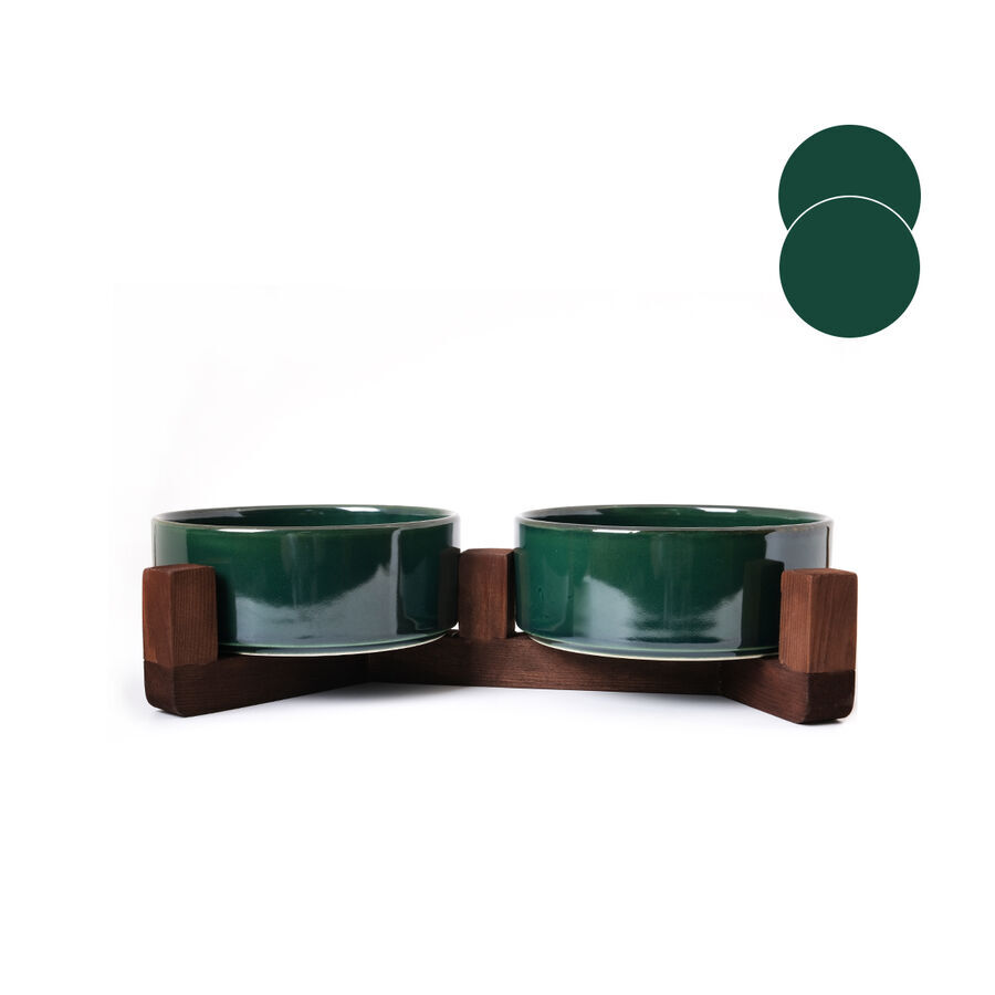 Tigres Stuff Boyun Destekleyici Seramik 2 li Mama ve Su Kabı Zümrüt Yeşili