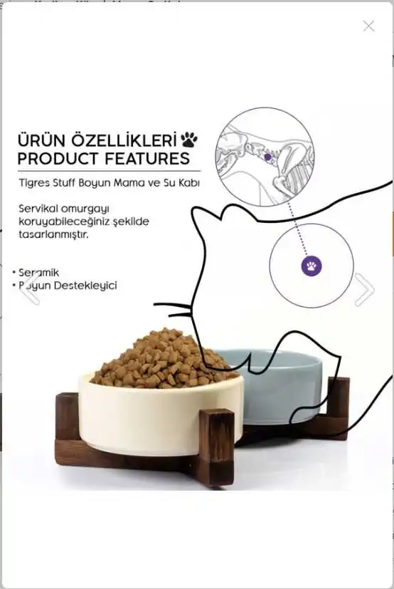 Bu özel mama ve su kabı setinin en dikkat çeken özelliklerinden biri, boyun destekleyici tasarımıdır. Yükseltilmiş platform sayesinde, kedilerinizin doğal beslenme pozisyonunda olmalarını sağlayarak boyun ve sırt kaslarının daha az zorlanmasını ve sindirim sistemlerinin daha rahat çalışmasını sağlar. Bu, özellikle yaşlı veya boyun problemi olan kediler için son derece önemlidir. Tigres Stuff Boyun Destekleyici Seramik 2li Mama ve Su Kabı, sağlıklı ve hijyenik bir beslenme ortamı sunar. Kolay temizlik imkanı sağlayan seramik malzeme, kedinizin beslenme kabının her zaman temiz ve hijyenik olmasını sağlar. Ayrıca, dayanıklı yapısıyla uzun süre dayanıklılığını korur.