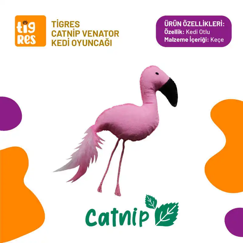 Tigres Venator Catnipli Flamingo Şeklinde Kedi Tüylü Oyuncağı, kedilerinizin avlanma içgüdülerini tatmin etmek ve eğlenceli bir oyun deneyimi sunmak için mükemmel bir seçenektir. Gerçekçi flamingo formu, tüy detayları, catnip dolgusu ve dayanıklı yapısıyla, bu oyuncağın kedilerinizin favori oyuncaklarından biri olması kaçınılmazdır.