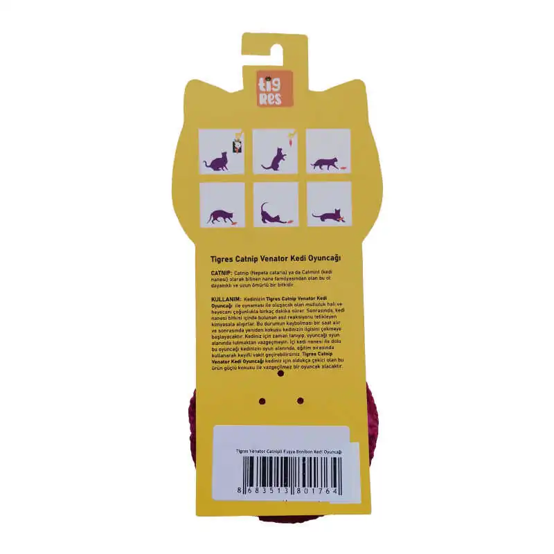 Kediler, doğaları gereği oyun oynamayı ve etraflarını keşfetmeyi çok severler. Bu nedenle, evcil dostlarımız için uygun ve eğlenceli oyuncaklar sağlamak önemlidir. Tigres Venator Catnipli Fuşya Bonibon Kedi Oyuncağı, kedilerin eğlenceli bir şekilde vakit geçirmelerini sağlarken aynı zamanda onların fiziksel ve zihinsel sağlıklarını desteklemek için özel olarak tasarlanmıştır. Bu oyuncağın en belirgin özelliği, gerçek bir bonibon formuna sahip olmasıdır. Fuşya rengindeki bonibon şekli, kedilerin dikkatini çeker ve oyuncağı keşfetmelerini teşvik eder. Yumuşak yapısı, kedilerin pençeleriyle rahatça oynamasına ve oyun sırasında güvenli bir deneyim yaşamasına olanak tanır. Oyuncağın üzerindeki çeşitli desenler ve kabartmalar, kedilerin avlanma içgüdülerini uyandırır ve oyunu daha ilginç hale getirir. Fuşya bonibonun dokusu, kedilerin oyun sırasında dikkatini çeker ve uzun süre ilgilerini korumalarını sağlar. Tigres Venator Catnipli oyuncağı, içerisinde bulunan catnip (kedi nanesi) dolgusuyla da dikkat çeker. Catnip, kediler üzerinde doğal bir uyarıcı etkiye sahiptir ve onların oyuncağa daha fazla ilgi göstermelerini sağlar. Bu sayede, kedilerin oyuncağa karşı ilgileri uzun süre boyunca devam eder. Dayanıklı malzemelerden üretilmiş olan bu oyuncağın, kedilerin sert oyunlarına dayanabilecek yapıda olması uzun süreli kullanımı mümkün kılar. Ayrıca, bonibonun hafif yapısı kedilerin kolayca taşımasına ve oynamasına olanak tanır. Sonuç olarak, Tigres Venator Catnipli Fuşya Bonibon Kedi Oyuncağı, kedilerinizin mutlu ve sağlıklı bir şekilde eğlenmelerini sağlayacak mükemmel bir seçenektir. Gerçekçi bonibon formu, çeşitli dokuları ve catnip dolgusuyla, kedilerinizin oyun saatlerini daha keyifli ve tatmin edici hale getirir.