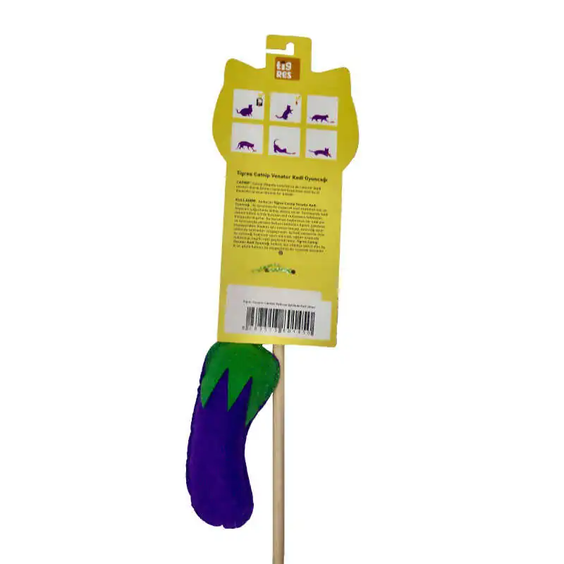 Tigres Venator Catnipli Patlıcan Şeklinde Kedi Oltası, kedinizin oyun saatlerini daha eğlenceli ve etkileyici hale getiren özel bir oyuncaktır. Bu oltanın en belirgin özelliği, gerçek bir patlıcanı andıran detaylı tasarımıdır. Parlak mor rengi ve gerçekçi görünümü, kedinizin ilgisini hemen çeker ve oyun saatlerini uzatır.