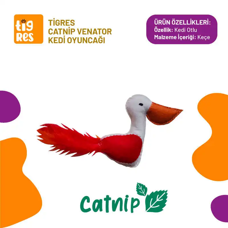 Tigres Venator Catnipli Pelikan Şeklinde Kedi Tüylü Oyuncağı, kedilerinizin avlanma içgüdülerini tatmin etmek ve eğlenceli bir oyun deneyimi sunmak için mükemmel bir seçenektir. Gerçekçi pelikan formu, tüy detayları, catnip dolgusu ve dayanıklı yapısıyla, bu oyuncağın kedilerinizin favori oyuncaklarından biri olması kaçınılmazdır.