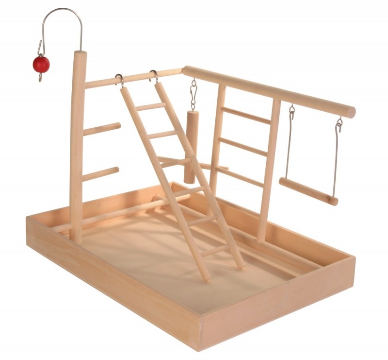 Muhabbet kuşu ve kanarya için ahşap oyun bahçesidir.