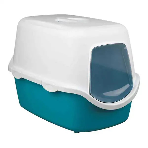 Çift cidarlı ve yüksek kenarları sayesinde kedi çişinin ve kedi kumunun dışarı çıkmasını engelleyerek kullanıldığı ortama ekstra hijyen sağlar. Kolay açılıp-kapanabilen yan kilitleri sayesinde çok kolay ve hızlı açılabilir, temizlenebilir flap kapılı kapalı kedi tuvalet kabı. alt tarafı akuamarin, üst tarafı beyaz renklidir.