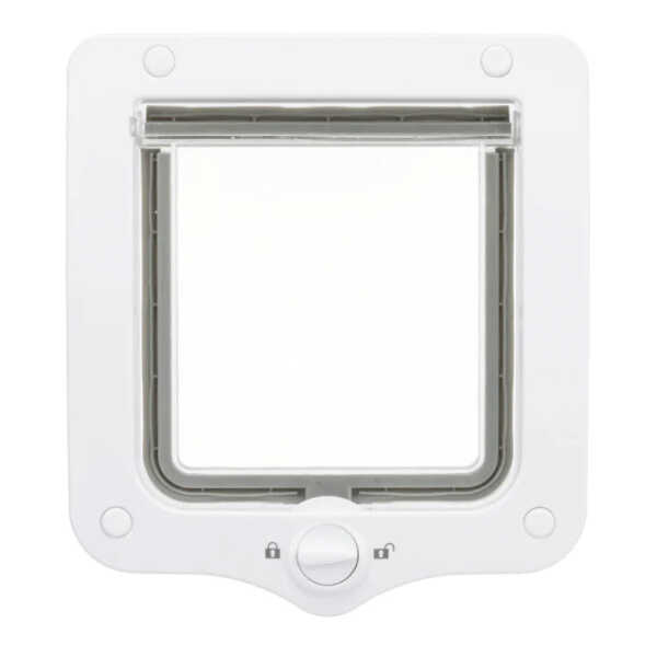 Kedi kapısı plastik ve şeffaftır. İstenildiğinde çift yönlü kilitlenebilir kedi kapısıdır.