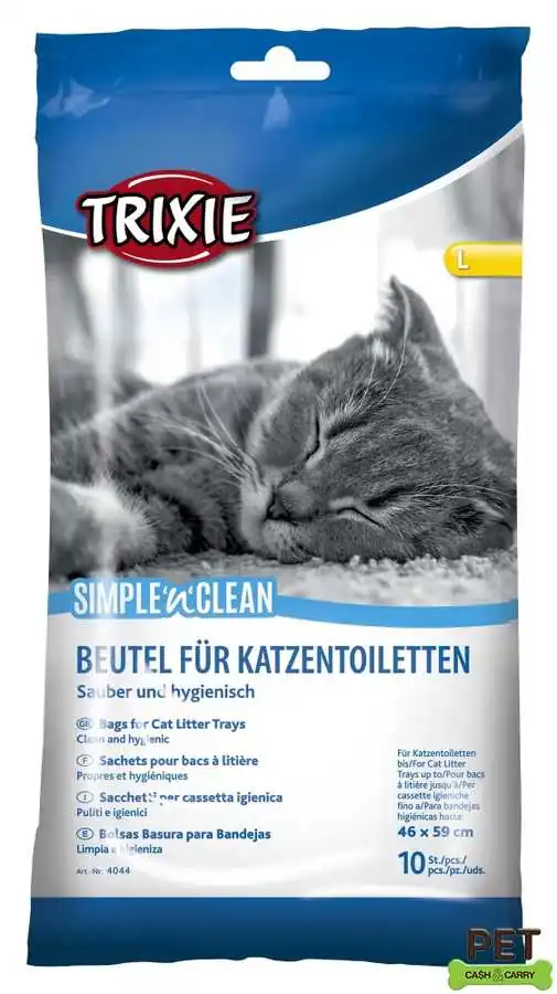 Her marka kedi tuvaletinde kullanılabilecek kedi tuvalet kabı torbasıdır. 46x59cm ölçülerine kadar tüm kedi tuvaletlerinde güvenle kullanılarak maksimum temizlik ve hijyen sağlar. Her pakette 10 adet kedi kumu torbası vardır. Özellikle Trixie marka 46x59cm e kadar tüm kedi tuvaletlerine çok uygundur.