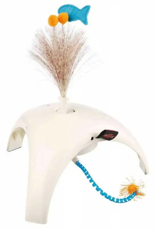 Kedi oyuncağı üzerinde bulunan 3 adet hareket sensörü ile kedinin oyuncak etrafındaki hareketlerini belirleyerek ona göre rastgele üst tarafındaki ve altındaki oyuncakları oynatan kedi oyuncağıdır. Kedinin avlanma içgüdülerini tatmin ederek geliştirmesini sağlar. Kutu içerisinden 2 tip farklı oyuncak çıkmaktadır. Kedi oyuncağının ayaklarının altındaki kauçuklar sayesinde oyuncak kaymaz. 2 adet AA pil ile çalışır. Piller kutuya dahil değildir.