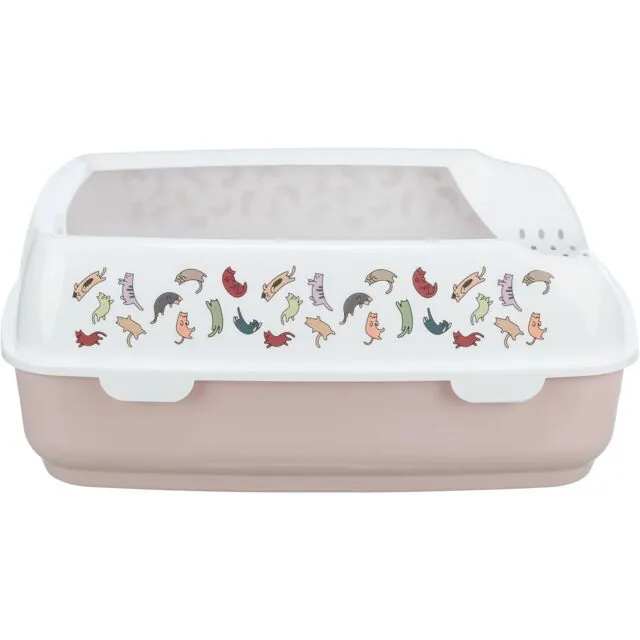 Trixie Kedi Tuvaleti, Yüksek Kenarlı ve Kedi Motifli, 38x20x50cm, Açık Lila/Beyaz