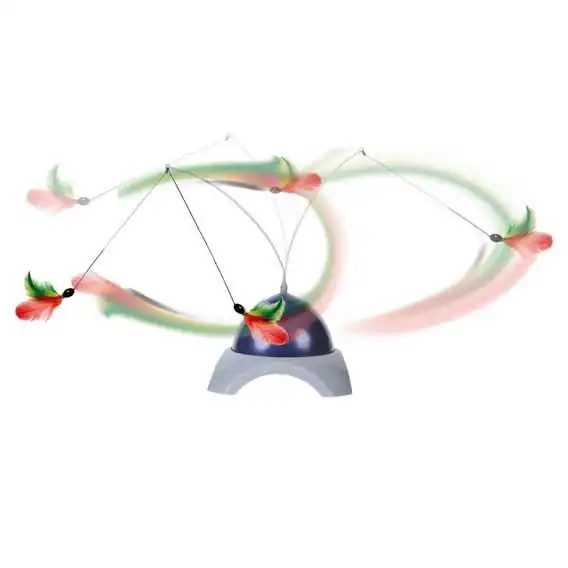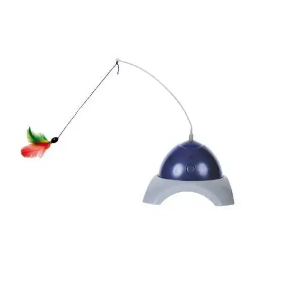 İçerisindeki pilli elektrik motoru ile ucundaki tüylü oyuncağı kendi ekseni etrafında çeviren, kedinin avlanma içgüdüsünü tetikleyerek avlanırcasına enerji harcamasını ve eğlenmesini sağlayan uzaktan kumandalı kedi oyuncağı. İçerisine 1 adet yedek tüylü oyuncağı dahil olup 3 adet A4 küçük pil dahil değildir.