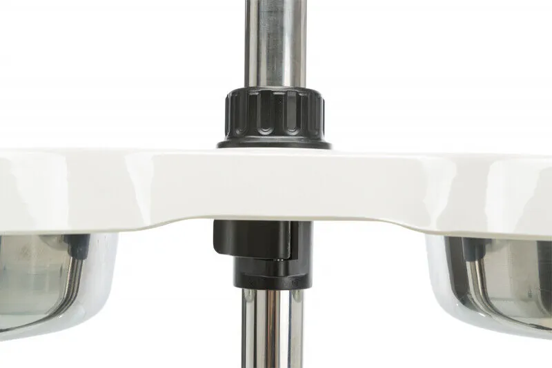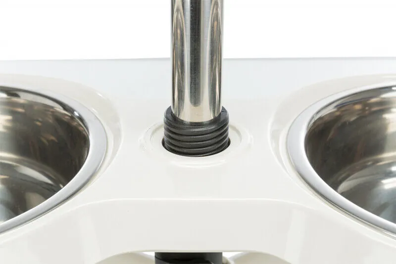 Hızlı ve kolay ayarlanabilir mekanizması ile çok kullanışlı ve şık ayaklı, ayarlanabilir köpek mama ve su kabıdır. Her iki tarafındaki mama ve su kabı paslanmaz çeliktir. Yedek alınmak istendiğinde Trixie 24754 veya 24755 satın alınabilir. Çok kolay şekilde ve hızlıca yükseklik ayarı yapılabilir. Mama ve su kabı ayakları altındaki kauçuklar sayesinde kaymazdır. Bulaşık makinasında yıkanabilir.2×1,6Lt Çap21cm