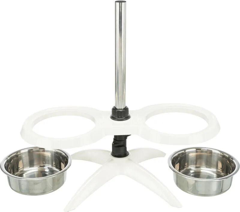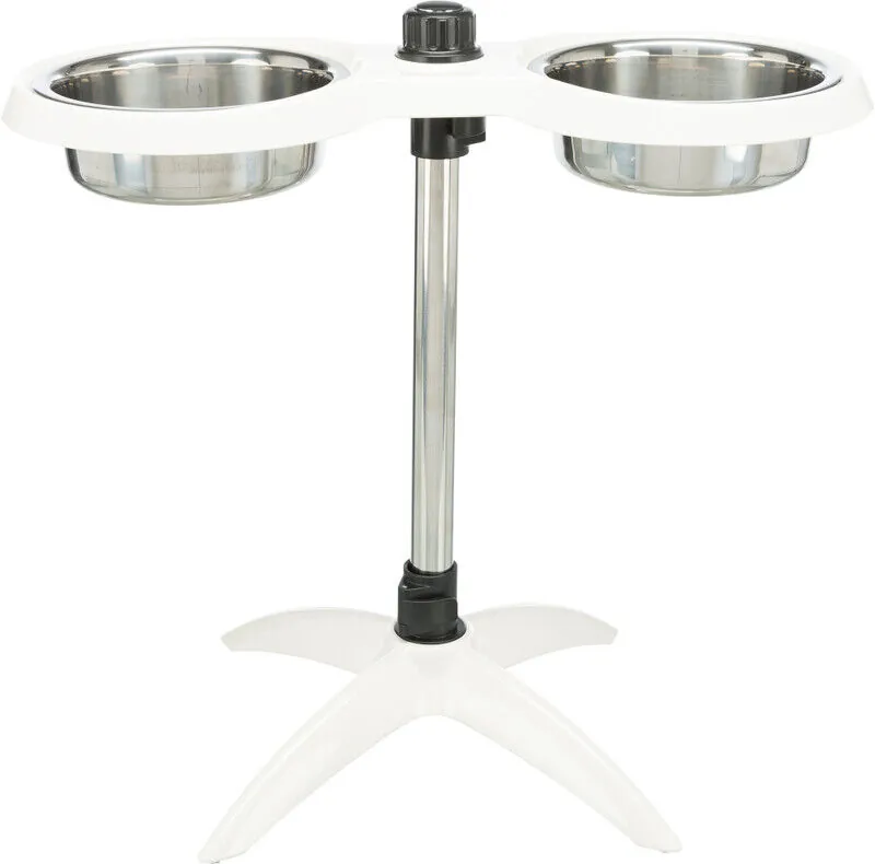 Hızlı ve kolay ayarlanabilir mekanizması ile çok kullanışlı ve şık ayaklı, ayarlanabilir köpek mama ve su kabıdır. Her iki tarafındaki mama ve su kabı paslanmaz çeliktir. Yedek alınmak istendiğinde Trixie 24754 veya 24755 satın alınabilir. Çok kolay şekilde ve hızlıca yükseklik ayarı yapılabilir. Mama ve su kabı ayakları altındaki kauçuklar saesinde kaymazdır. Bulaşık makinasında yıkanabilir.2×2,4Lt Çap21cm