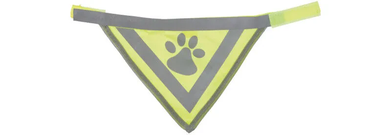 Fosforlu bantları ve fosforlu pati baskısı olan polyester fosforlu yeşil köpek boyun bandanası. Fosforlu köpek bandanası gece görüş ve güvenlik açısından köpeğinizi ve sizi özellikle gece görülür hale getirir.