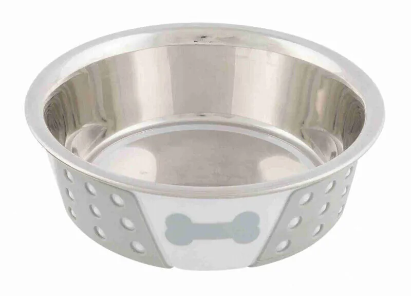 Trixie Köpek Mama Su Kabı, Paslanmaz Çelik Silikon 0,4Lt 14cm Beyaz Gri