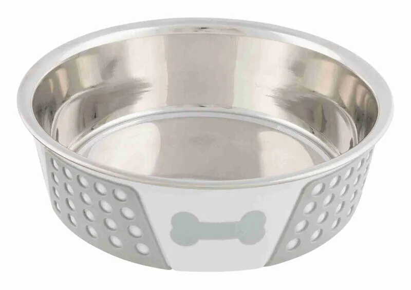 Trixie Köpek Mama Su Kabı Paslanmaz Çelik Silikon 1,4Lt 21cm Beyaz Gri