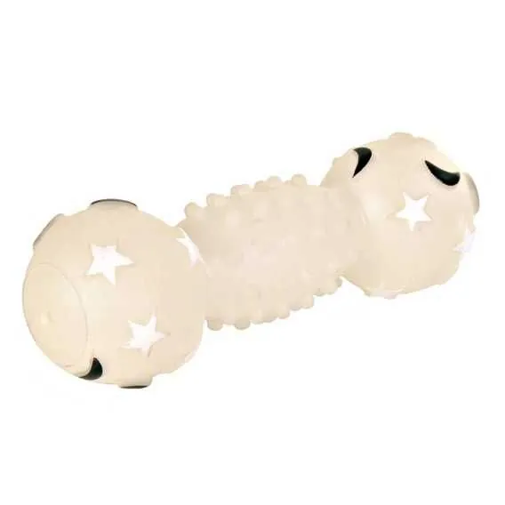 Kaliteli Vinylden üretilmiş, fosforlu ve sesli köpek oyun dambılıdır. Ürün çeşitli renklerdedir. Üzerindeki kirpi dokusu sayesinde köpeğiniz tarafından rahatça yakalanabilecek bir oyuncaktır. Fosforlu olması sayesinde gece de köpeğiniz bu oyuncak ile rahatça oynayabilir. Çap 10cm