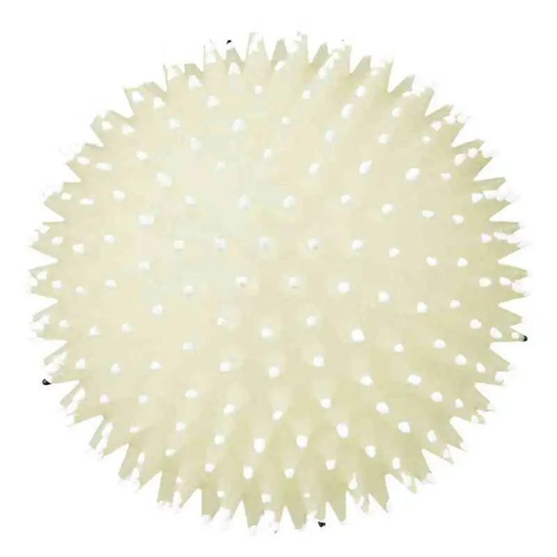 Ürün çeşitli renklerdedir. Üzerindeki kirpi dokusu sayesinde köpeğiniz tarafından rahatça takalanabilecek bir toptur. Fosforlu olması sayesinde gecede köpeğiniz bu oyuncak ile rahatça oynayabilir.
