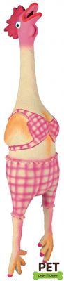 Horoz şeklindeki bu komik oyuncak latex malzemeden üretilmiştir. İçerisindeki dayanıklı yumuşak dolgu sayesinde köpeğiniz oyuncağı ağzına aldığında nazikçe dişlerinin arasında taşıyacak, yumuşaklık hissi sayesinde onu parçalamaya çalışmayacaktır. (Özellikle av köpekleri vb.) Unutulmamalıdır ki oyuncak ile yalnız kalan köpeklerin bir çoğu sonunda oyuncağı parçalayabilir. Tavsiye edilen oyuncak ile köpeği yalnız bırakmamak, köpek sahibiyle birlikte oyuncak ile oynanmasıdır. Bu oyuncak aynı zamanda ses çıkartan bir oyuncaktır.