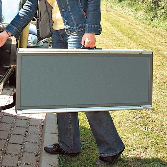 120 Kg'a kadar taşıma kapasitesine sahiptir. Alüminyum ve plastik malzemeden imal edilmiştir. Üzeri kaymaz malzeme ile kaplıdır ve yanlarında emniyet rayları vardır. Yüksek yerlerden inip çıkarken köpeklerinizin eklemlerini korur, eklem problemli ve yaşlı köpeklerinizin kolayca inip çıkmasını sağlar. Arthrosis ve artrit rahatsızlığı bulunan köpekler için şiddetle tavsiye edilmektedir. Ayarlanabilir boyu sayesinde iniş açısıda ayarlanabilmektedir. Rampa toplam ağırlığı 5,8 Kg'dir ve çok kolay temizlenebilmektedir.