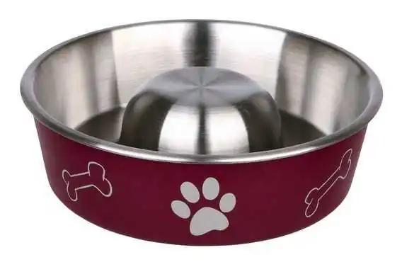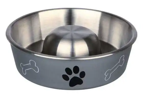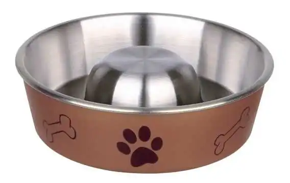 Paslanmaz çelik yavaş besleme mama kabıdır. Dış yüzeyi plastik kaplıdır. Mama kabı merkezindeki çıkıntı sayesinde köpeğinizin mamayı hızlı şekilde yutması engellenmektedir. Kauçuk tabanı sayesinde kaymazdır.