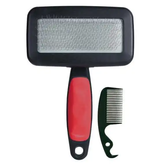 Ekstra yumuşak metal kıllı, kaymaz saplı, fırça temizleme tarağı içeren fırça. Köpeğinizi fırçalayarak köpeğinize bakım yapmakla birlikte, köpeğinizle aranızdaki bağı kuvvetlendireceğinizi unutmayınız.