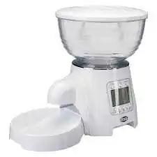 Tamamı plastik, 5Kg kuru mama kapasiteli, içerisindeki sonsuz vida sistemi sayesinde mama sıkışma problemi olmayan, özellikle kedilerin, dökülme ağzına patilerini sokarak mamayı dökemeyecekleri, günde 5 öğüne kadar ayarlanabilen otomatik mama kabıdır. Kedi ve köpek için kullanılabilir. Minimum 25gr, maksimum 500gr porsiyon ayarı yapılabilmektedir. Ayarlaması çok kolaydır. Şeffaf mama haznesi çıkarılarak kolayca doldurulabilir ve temizlenebilir. Mama haznesi bulaşık makinesinde yıkanabilir. LCD ekranlı kumanda paneli sayesinde çok kullanışlıdır. Tuş kitleme özelliğine sahiptir. Her öğünde istenirse ses kaydı yapılarak kedi veya köpek, mama kabına çağırılabilir. USB kablo ile veya pil ile çalıştırılabilir. USB kablo paket içerisinde çıkmaktadır. 4 x D Mono pil dahil değildir. USB kablo İçin adaptör ayrıca satılmaktadır. Ürün kodu 12709 dur. Dikkat ! Ürünü USB kablo ile kullanırken pillerin çıkarılması gerekmektedir.