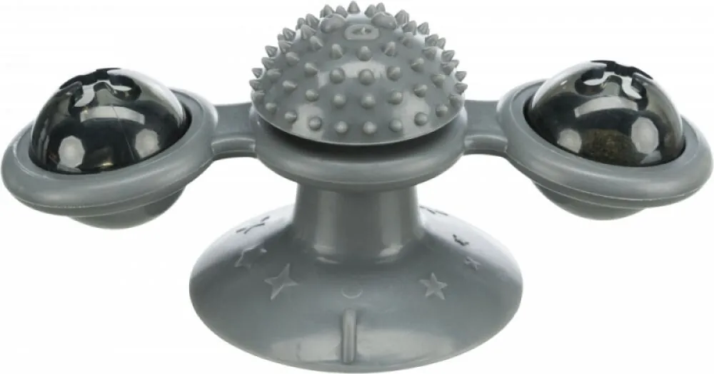 Cam vb yüzeylere vakumla yapıştırılarak kedinizin oynamasını sağlayabileceğiniz, dönen kollara sahip, TPR'dan üretilmiş dayanıklı kedi oyuncağıdır. İçerisindeki ziller sayesinde sesli bir oyuncaktır.