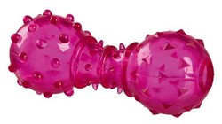 Termoplastik malzemeden üretilmiş çok dayanıklı dambıl şeklinde köpek oyuncağıdır. 12 cm dir. Üzerindeki çıkıntılar sayesinde köpeğiniz dambılı çok kolay ağzında tutabilecek ve taşıyabilecektir. Bu oyuncağın içi aynı zamanda mama veya ödül ile doldurulabilir. Bu sayede köpeğinizin zevkli zaman geçirmesi, oyuncak ile parçalamadan oynaması sağlanır. Küçük ve orta ırk köpekler için ideal bir oyuncaktır.