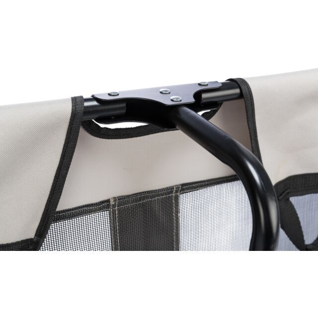 Sağlam metal çerçeve kolayca katlanabilir, yerden tasarruf sağlayacak şekilde saklanabilir ve taşıma kolu aracılığıyla rahatça taşınabilir. Şezlongun, yükseltilmiş köpek yatağının su geçirmez kılıfı kolayca silinip çıkarılabiliyor, bu da kolay bir temizlik yapılmasına olanak sağlıyor.