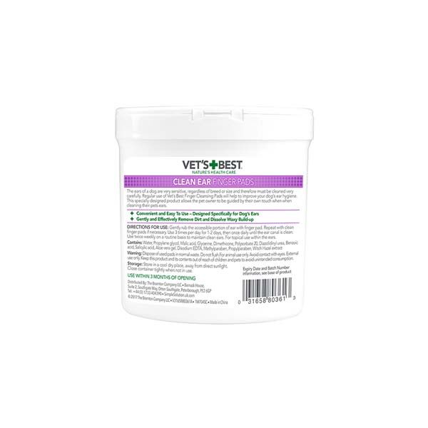 Vet's Best'in Kedi ve Köpekler için Fındık ve Aloe Vera Özlü Kulak Temizleme Pedleri genellikle evcil hayvanların kulak hijyenini korumak ve temizlemek için tasarlanmıştır. Kulak içinde biriken kirleri ve balmumu temizlemek amacıyla kullanılan pedler genellikle doğal ve bitkisel içeriklerle zenginleştirilir.