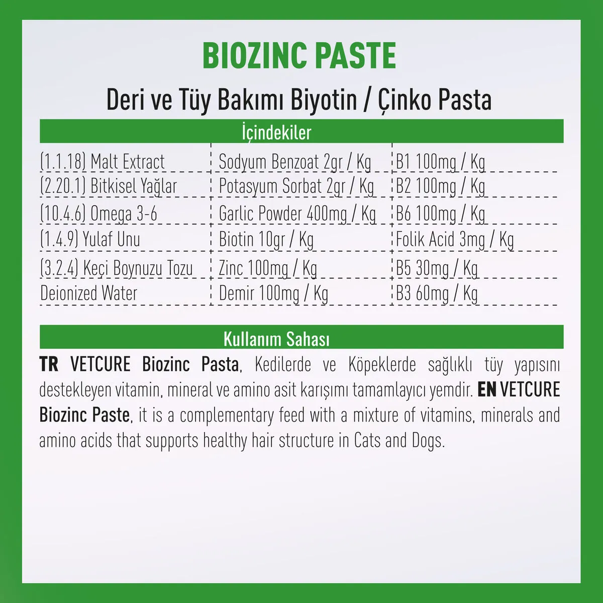 Vetcure Biozinc Kedi ve Köpek Deri ve Tüy Destekleyici Paste 100 gr