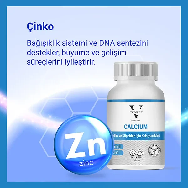 Vetcure Calcium Kedi ve Köpekler İçin Kalsiyum Desteği 75 Tablet