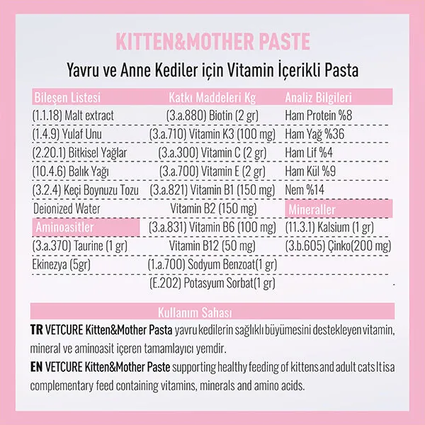 Vetcure Kitten Paste ile yavrunuza güvenli bir başlangıç, annesine güçlü bir destek verin.